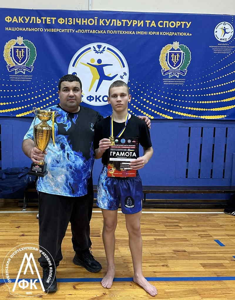 Вітаємо наших студентів з успішними виступами на спортивних змаганнях з кікбоксингу WAKО, які пройшли 22-23 листопада у м. Полтава, а саме Різвого Юрія, Скорика Арсена група (ЛГ-11) та Кокошко Домініку група (СПГ-11) з вдалим виступом на відкритому кубку міста Полтава «POLTAVA CUP» з кікбоксингу WAKO приуроченому памʼяті загиблих воїнів зведеного штурмового загону «ОДІН».