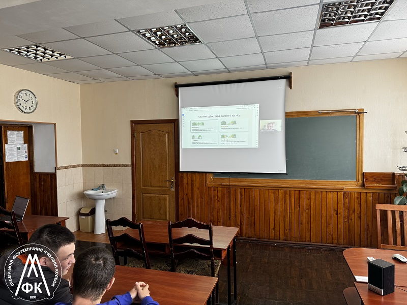 Разом зі студентами до лекції долучилися в.о. директора коледжу Володимир ТИХОВИЧ, голова циклової комісії спеціальності "Лісове господарство" Ангеліна ЧИЧУЛ, та викладачі фахових дисциплін Олександр ЛИТВИНЕНКО та Оксана ЗАМУЛА.