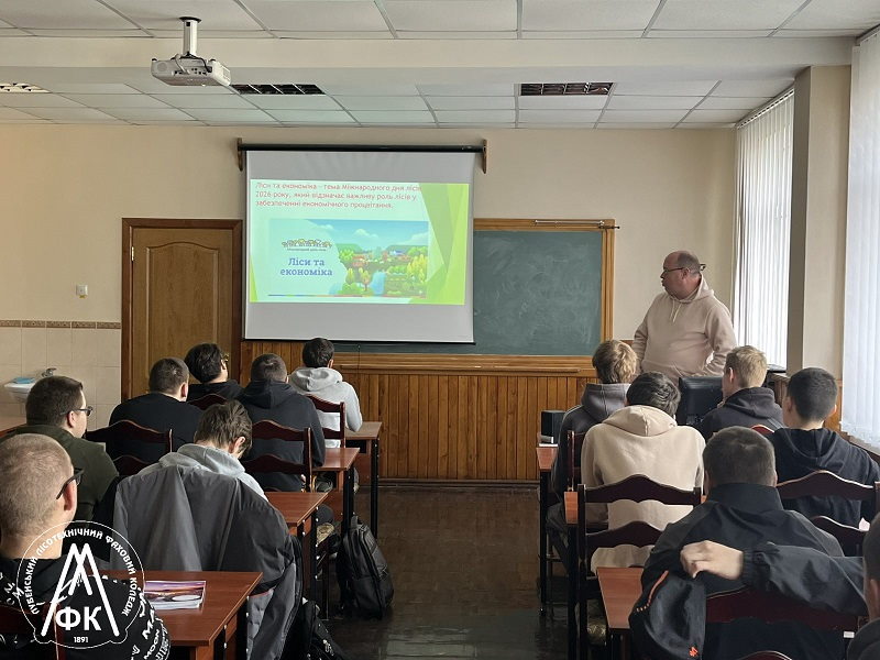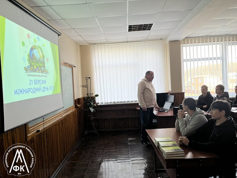 Студенти дізналися про історію цього свята, заходи які проводяться цього дня у всьому світі під егідою Продовольчої і сільськогосподарської організації Об'єднаних Націй. Здобувачі освіти, окрім інформації про історичні аспекти розвитку лісів, дізналися про цікаві факти про ліс і дерева, важливість всіх типів лісів та підвищили свою обізнаність про їхню роль для людства, а також, що кожен Міжнародний день лісів (а цьогоріч тема свята – «Ліси та економіка») проводиться з метою надавати підтримку зусиллям країн на місцевому, національному та міжнародному рівнях щодо організації заходів, пов'язаних з лісами та деревами, наприклад, кампаніям з висаджування дерев.