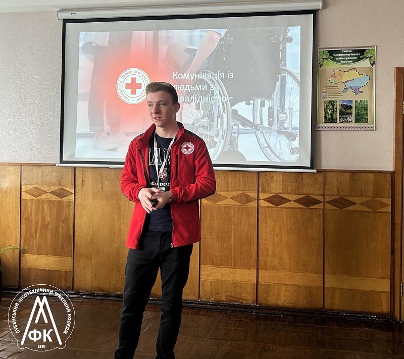 У коледжі відбувся тренінг етики спілкування із людьми з інвалідністю та військовослужбовцями. Захід провів інструктор Полтавської обласної організації Товариства Червоного Хреста України Юрій Іващенко для студентів груп СПГ-21 та СПГ-31.