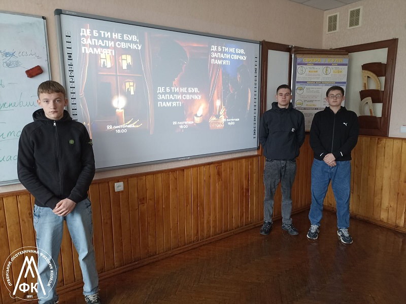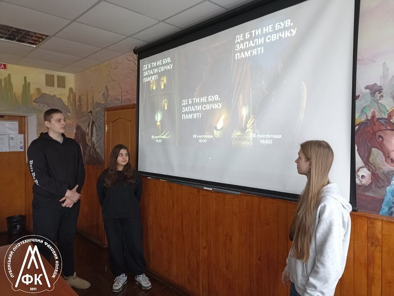 У переддень всеукраїнських меморіальних заходів 22 листопада про Голодомор студенти першого курсу коледжу на заняттях з історії України обговорювали причини та наслідки геноциду українців у часи насильницької колективізації, переглянули сторінки «Національної книги пам’яті жертв Голодомору 1932-1933 років».