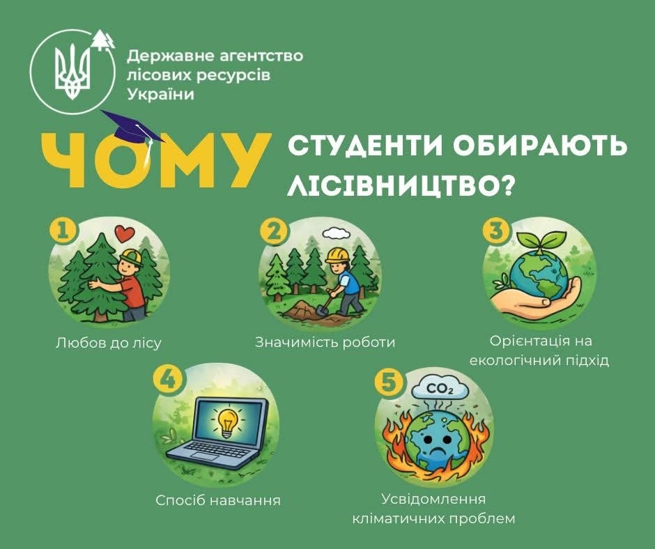 Любов до природи та лісу є найпоширенішою причиною вибору професії у лісівничій галузі – такі підсумки нещодавнього соцдослідження, проведеного у межах проєкту Fem2forests. Втім на рішення впливає ще низка факторів – про це в інфографіці.