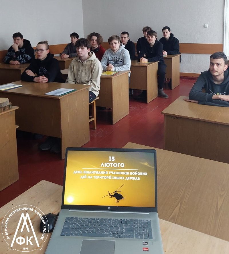 У коледжі проведено тематичну виховну годину «Чужої війни не буває» із метою вшанування громадян, які виконували військовий обов’язок на території інших держав. Окрема увага приділена географії місій, прикладам героїзму, гуманітарним операціям, порятунку цивільного населення, а також ціні миру – втратам і жертвам серед українських військових.