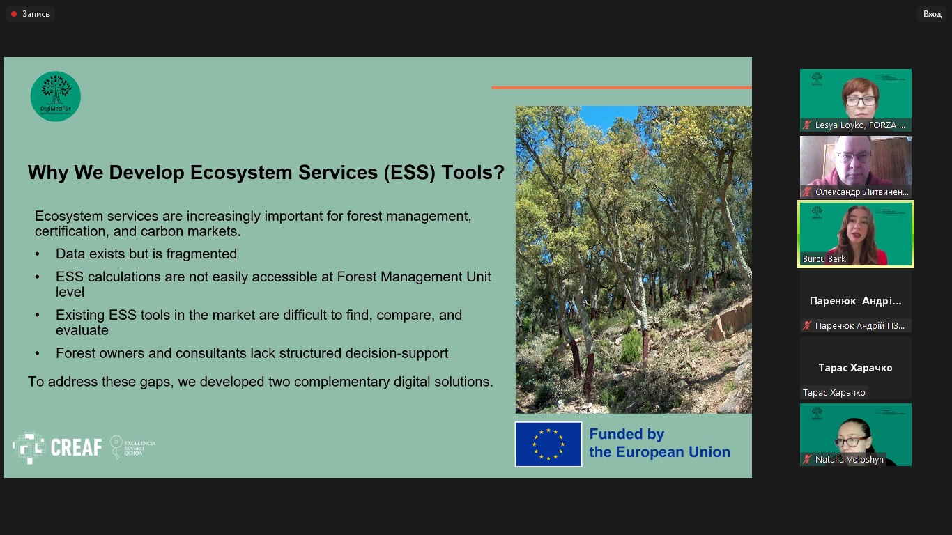 - Бурчу Берк (Burcu Berk, CREAF, Іспанія) - представила інструмент оцінки екосистемних послуг в лісовому господарстві, розроблений спільно з PEFC Іспанія;