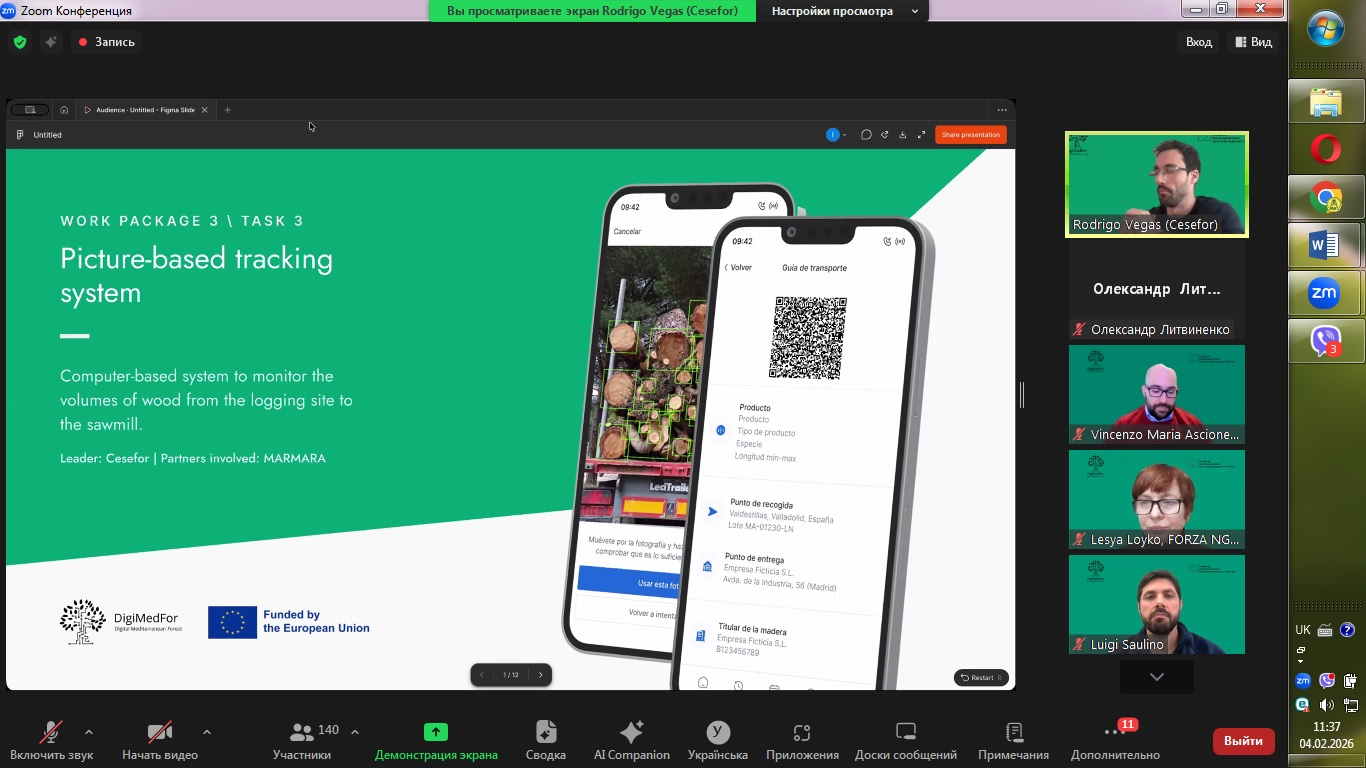 - Родріґо Хіменес (Rodrigo Jiménez, CESEFOR, Іспанія) - продемонстрував інструмент моніторингу руху деревини на основі фотознімків;